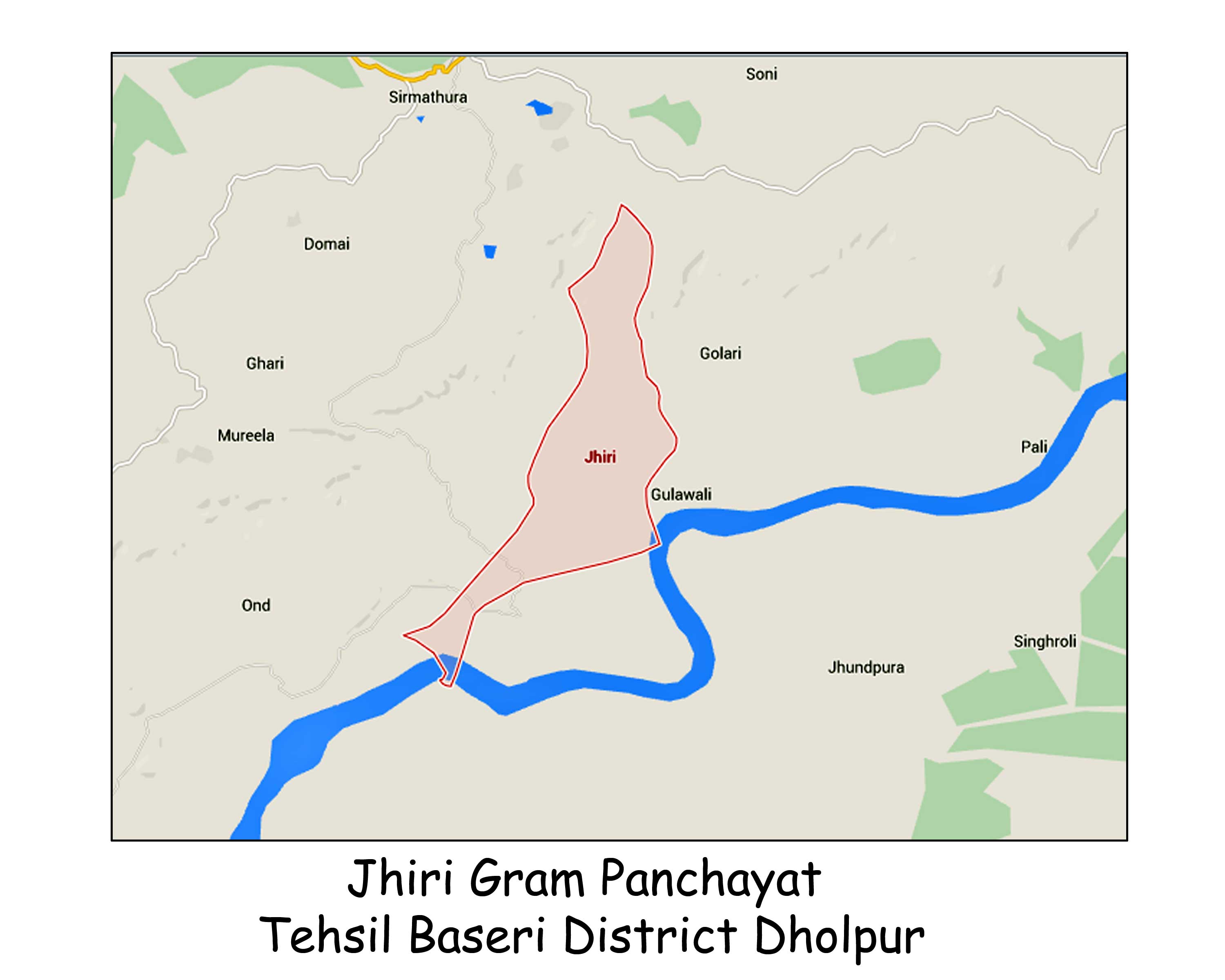 झिरी गॉव एक ग्राम पंचायत मुख्यालय हैं। इस ग्राम पंचायत के अन्तर्गत झिरी, भम्पुरा, शंकरपुर, रुध का पुरा, हल्लू का पुरा, भगतपुरा, पनावती, खिल्लाडाना, सेवरियापुरा, दुर्गसी, अमरपुरा, जारोला आदि गॉव आते हैं।